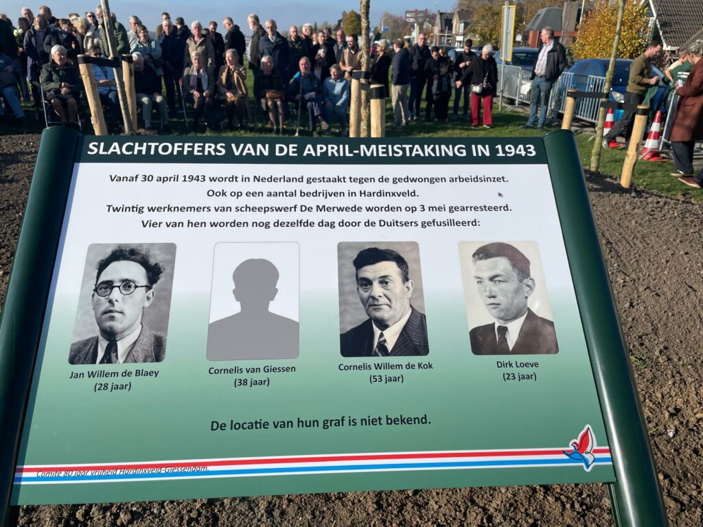 Op de dijk bij het Lange Veer staat een herdenkingsbord met vier bomen ter herdenking van de vier stakers die in 1943 standrechtelijk werden geëxecuteerd. De lichamen van deze stakkers is nooit gevonden.